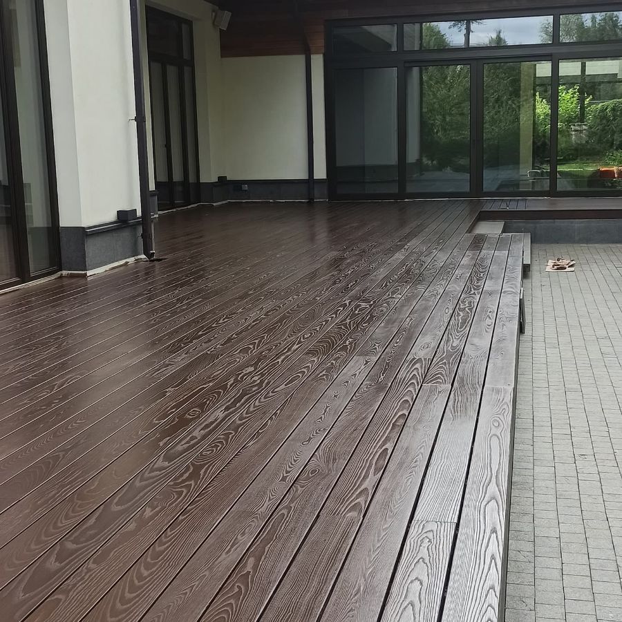 На сегодняшний день есть современные качественные материалы, обеспечивающие достаточно длительную защиту террасной доски от атмосферных воздействий. Возможно, для обновления террасы будет достаточно произвести ее очистку моющим средством под давлением и обновить защитное покрытие. А возможно, потребуются более серьезные мероприятия по ее ремонту. Мы профессионально выполняем все виды работ, связанные: с укладкой, шлифовкой и обслуживанием террас из натурального дерева. Мы гарантированно восстановим первоначальный цвет дерева или подберем новый по вашему выбору